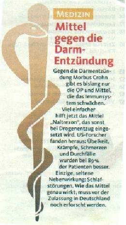 Contra la inflamacion intestinal por Morbus Crohn hasta ahora solo hay la operación quirúrgica o medios que debilitan el sistema inmune.