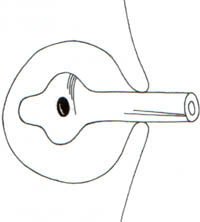 3. Colocación de una sonda de drenaje en hongo tipo champiñón (mushroom);tiene la ventaja de que la incisión en la piel es pequeña y poco dolorosa. Es el método ideal en pacientes con enfermedad de Crohn y en inmunosuprimidos que tienen trastornos de la cicatrización (Figura 4);